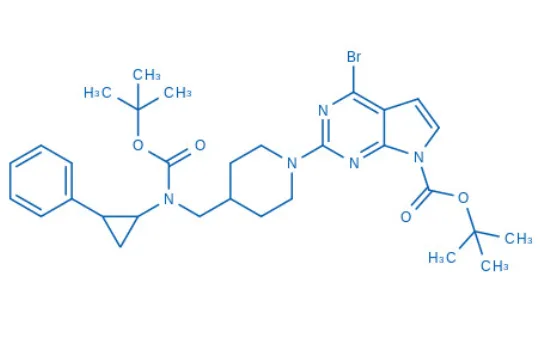 | Product Name | tert-Butyl 4-bromo-2-(4-(((tert-butoxycarbonyl)(2-phenylcyclopropyl)amino)methyl)piperidin-1-yl)-7H-pyrrolo[2,3-d]pyrimidine-7-carboxylate |
